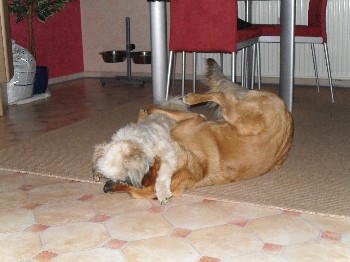 wird wärmestens aufgenommen im Kreise der Hunde...wie schön, dass Hunde untereinander keine Sprachprobleme haben.