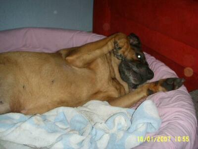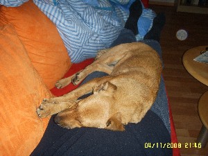 Aber auch ein kleiner junger Hund ist irgendwann einmal müde - und bevorzugt dann ein kleines Nickerchen auf dem Schoss...