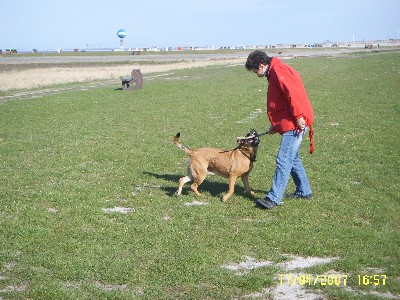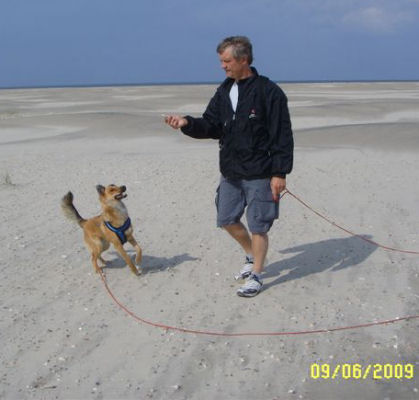 Danach wurden wir dann “eingeschult”. An der Leine zu gehen fällt ihr schwer, “Sitz” hat sie ja bereits auf Kreta gelernt, das klappt also bestens. Mit “Platz” weiss sie