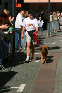 Die letzten 500 Meter zogen sich durch das Städtchen. Ziemlich alleine walkte ich daher, Lisa wurde vom Moderator als ersten Vierbeiner, der das Ziel erreicht, besonders angekündigt und ich war überrascht, mit